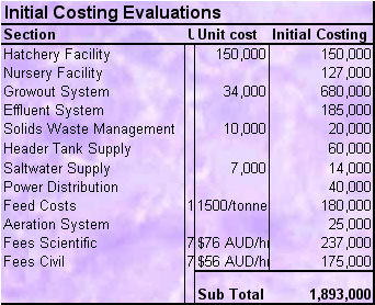 The growout tanks are approximately 6 meters x 5meters x 2 meters in height and can be built from any available materials relative to the local material costs. At one end they have a two stage self cleaning mechanical filtration unit which removes solids down to approximately 30 - 40 micron, which incidentally, are manufactured in Australia.